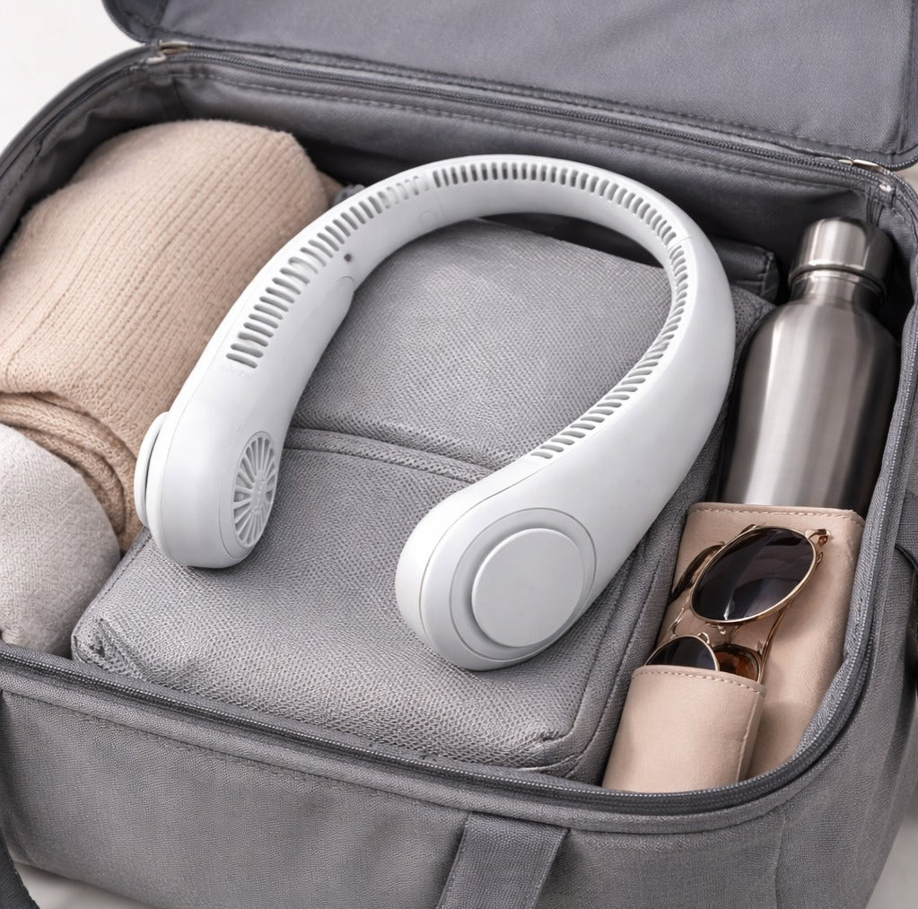 Olvídate de abanicos ruidosos o ventiladores incómodos. Su diseño ergonómico y sin aspas te permite usarlo todo el día sin molestias, sin ruido y sin llamar la atención.